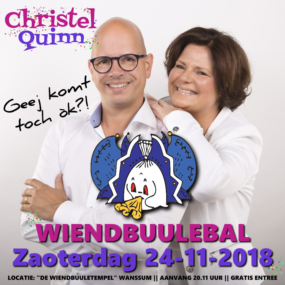 Op zaterdag 24 november a.s. zal na het uitkomen van Prins Carnaval 2019, Christel en Quinn (voormalig W-Dreej, bekend van hits, zoals ‘Vandaag!’) een spetterend optreden geven in de Wiendbuuletempel in Wanssum! Hier wil je toch ook bij zijn?!