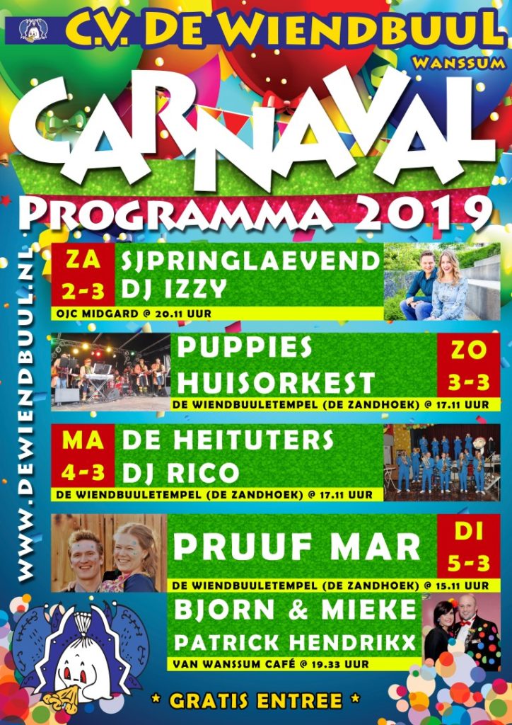 Vrienden / leden van C.V. De Wiendbuul mogen GRATIS mee na opgave.