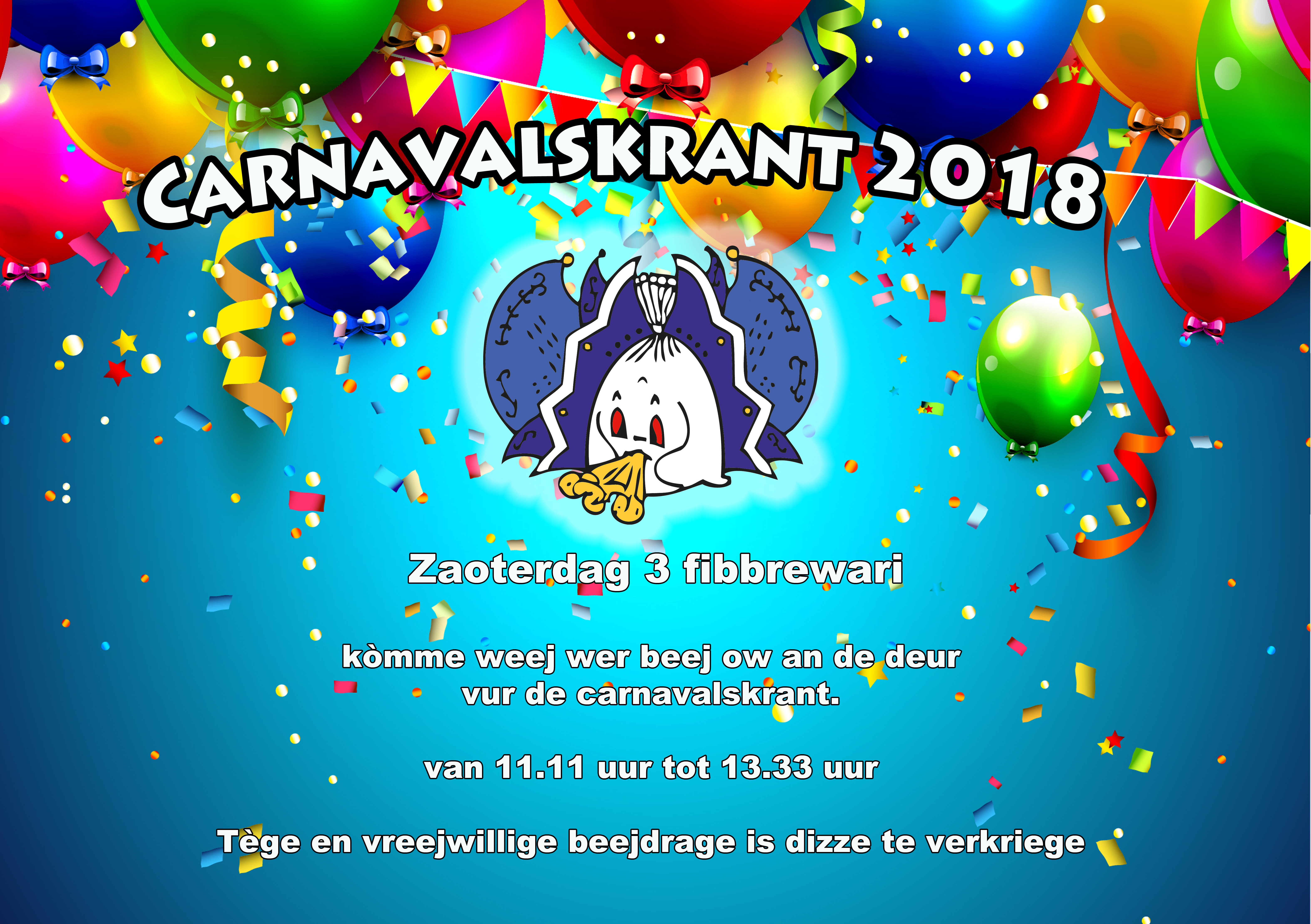 Zaterdag 3 februari komen we weer langs de deur voor de verkoop van onze Carnavalskrant.