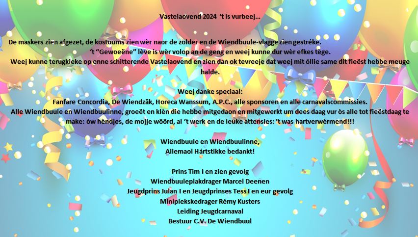 04-03-25 Carnavalsdinsdag: Kiendermiddag, carnavalsbal, afsluiting en strijken vlag