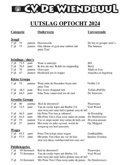 02-03-25 Carnavalszondag: Ludieke Mis 10.33u, vlag, Antappe beej Van Wieren, Wiendschietersbal, receptie Prins en plakdrager, wiendkracht 33 bal