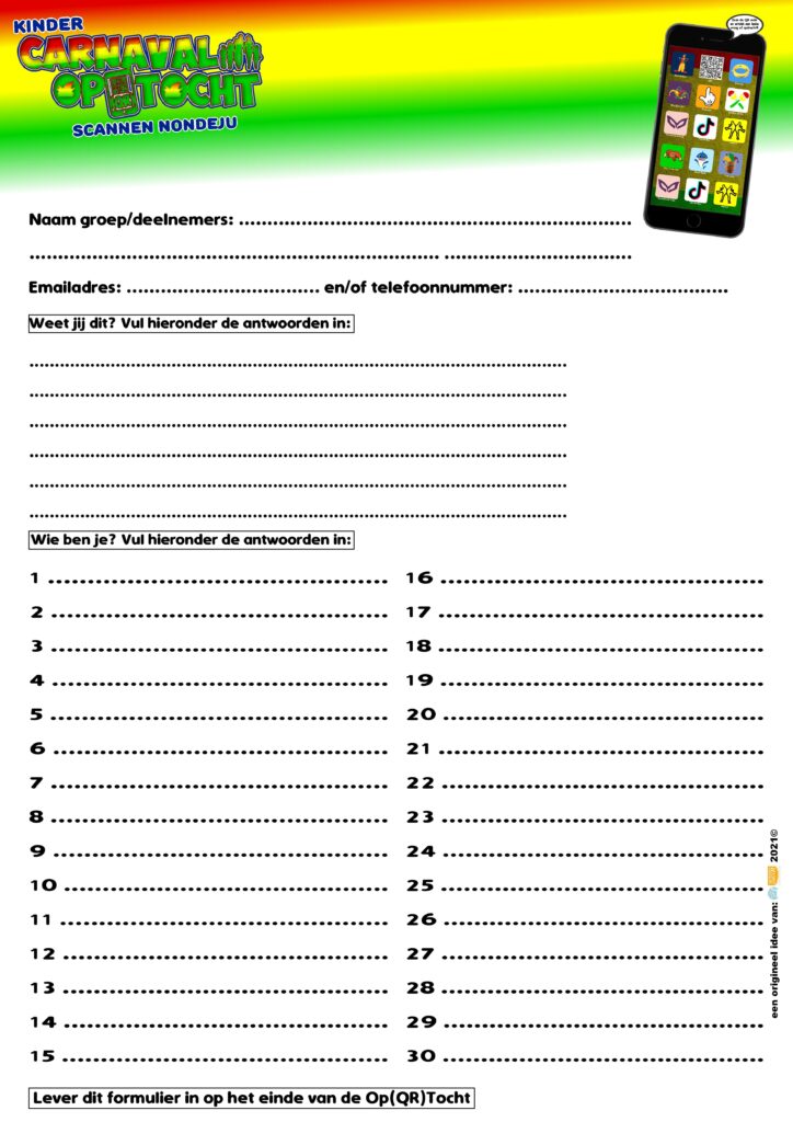De Kinder Carnaval Op(QR)Tocht is een GRATIS wandeltocht (ong. 5 km) voor alle kinderen tot ±13 jaar.